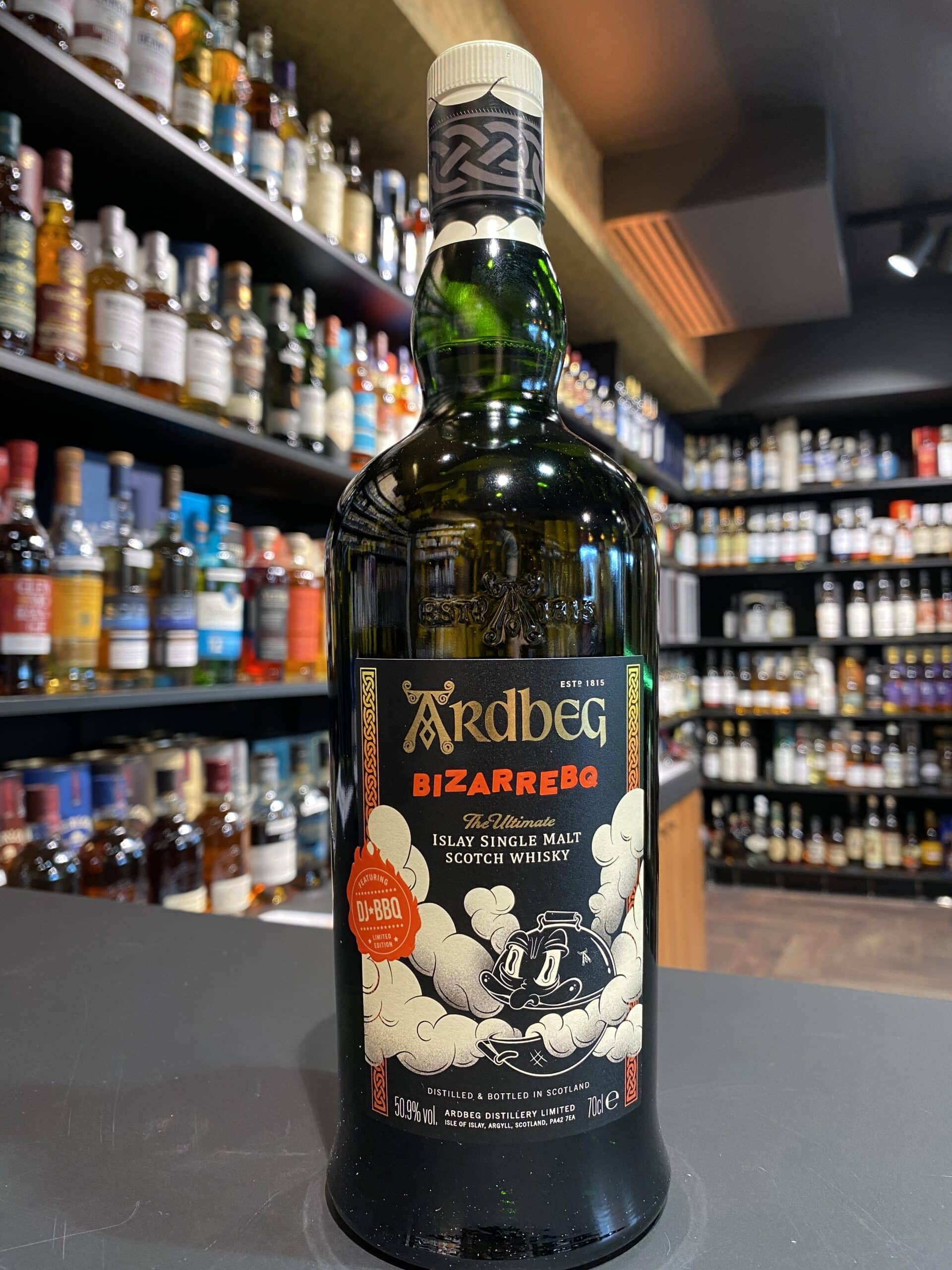 Ardbeg Bizarre BQ…..Je begint met een dwaas idee, je brengt drie unieke vaten samen, twee meesters in hun eigen recht, en heel veel hitte en rook… wat krijg je dan? Je krijgt de allereerste barbecue-geïnspireerde whisky van de distilleerderij – Ardbeg BizarreBQ. Bedacht door de befaamde Master Distiller, Dr. Bill Lumsden, samen met de ware grillmeester, Christian Stevenson (ook wel bekend als DJ BBQ), heeft deze watertandende malt een vleesachtige, turfachtige punch.