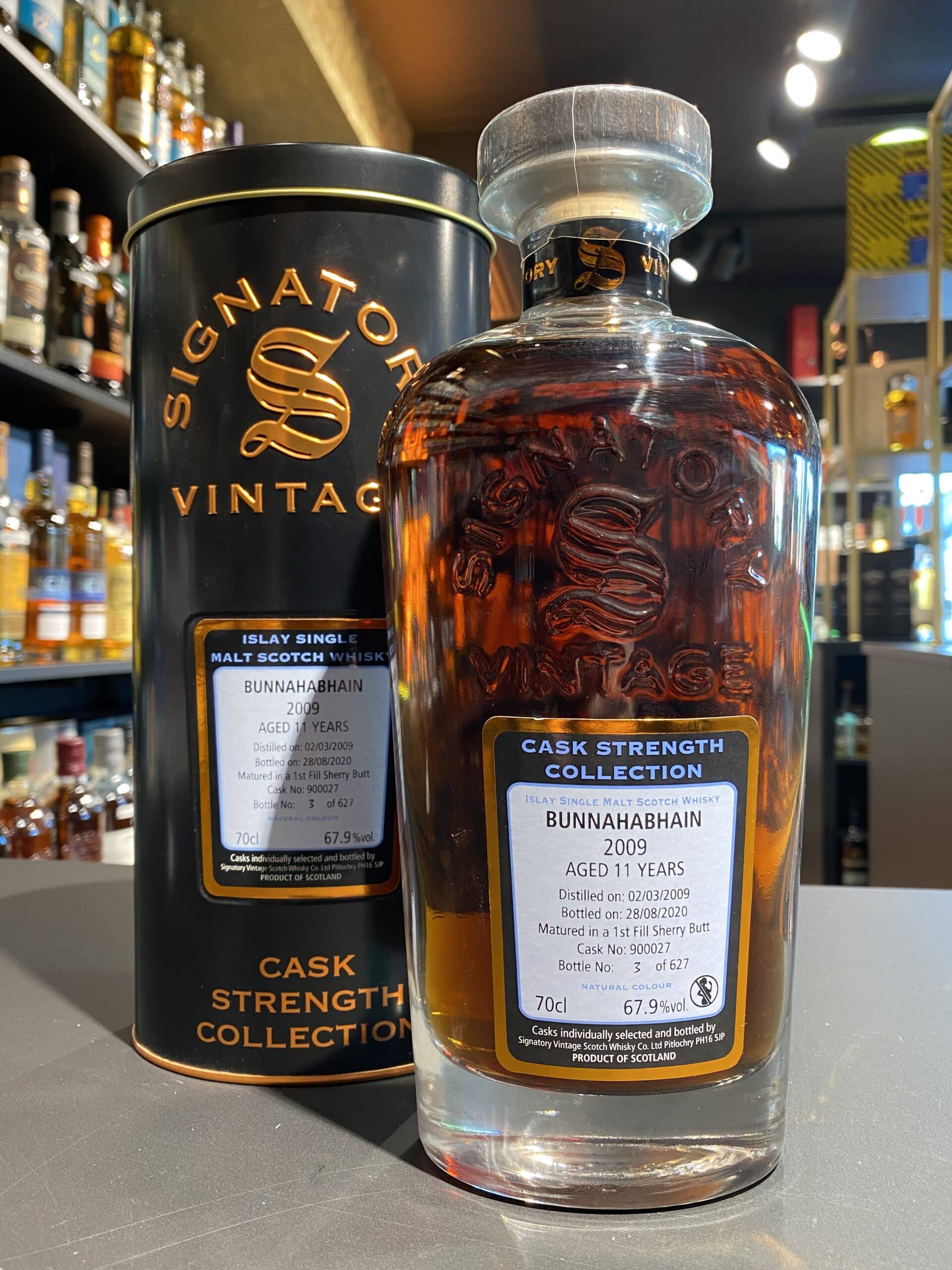 Bunnahabhain 11 years maakt onderdeel uit van de Cask Strength collection van Signatory Vintage, een bekende onafhankelijke bottelaar. In 2009 gedistilleerd, waarna de new make spirit in een first-fill sherry butt is gevuld en aan een in totaal 11 jaar durende rijpingsperiode begon. Deze whisky is afgevuld op vatsterkte. De rijke en complexe huisstijl van Bunnahabhain is op een smaakvolle wijze verrijkt met lagen van sherry-zoetigheden, kruiden en tonen van eiken.