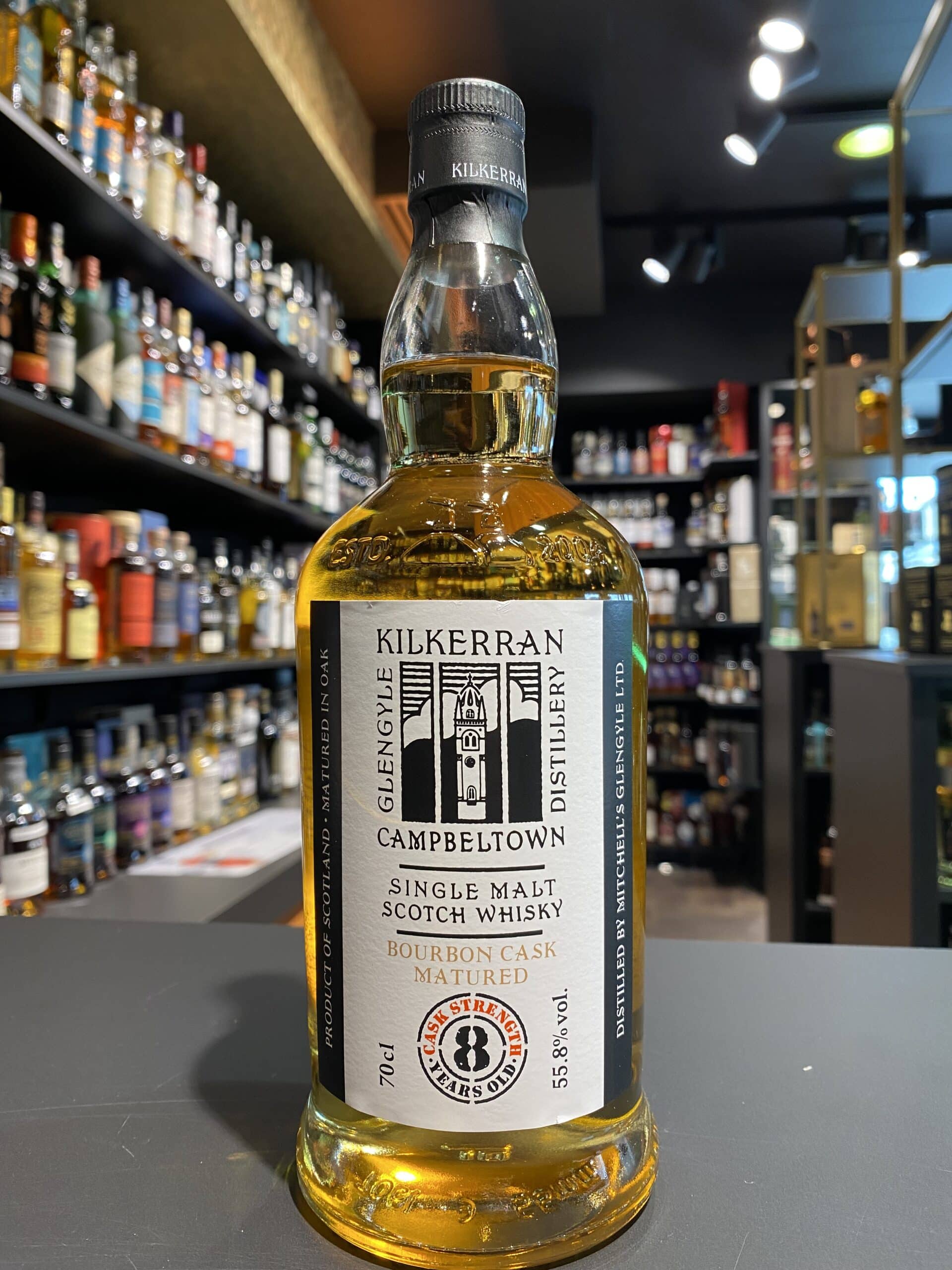 Kilkerran 8 Years Cask Strength Bourbon Batch 8 is een single malt whisky die geproduceerd wordt door de Glengyle-distilleerderij in Campbeltown, Schotland. De whisky heeft gerijpt in ex-bourbon vaten en heeft een alcoholpercentage van 55,8%.