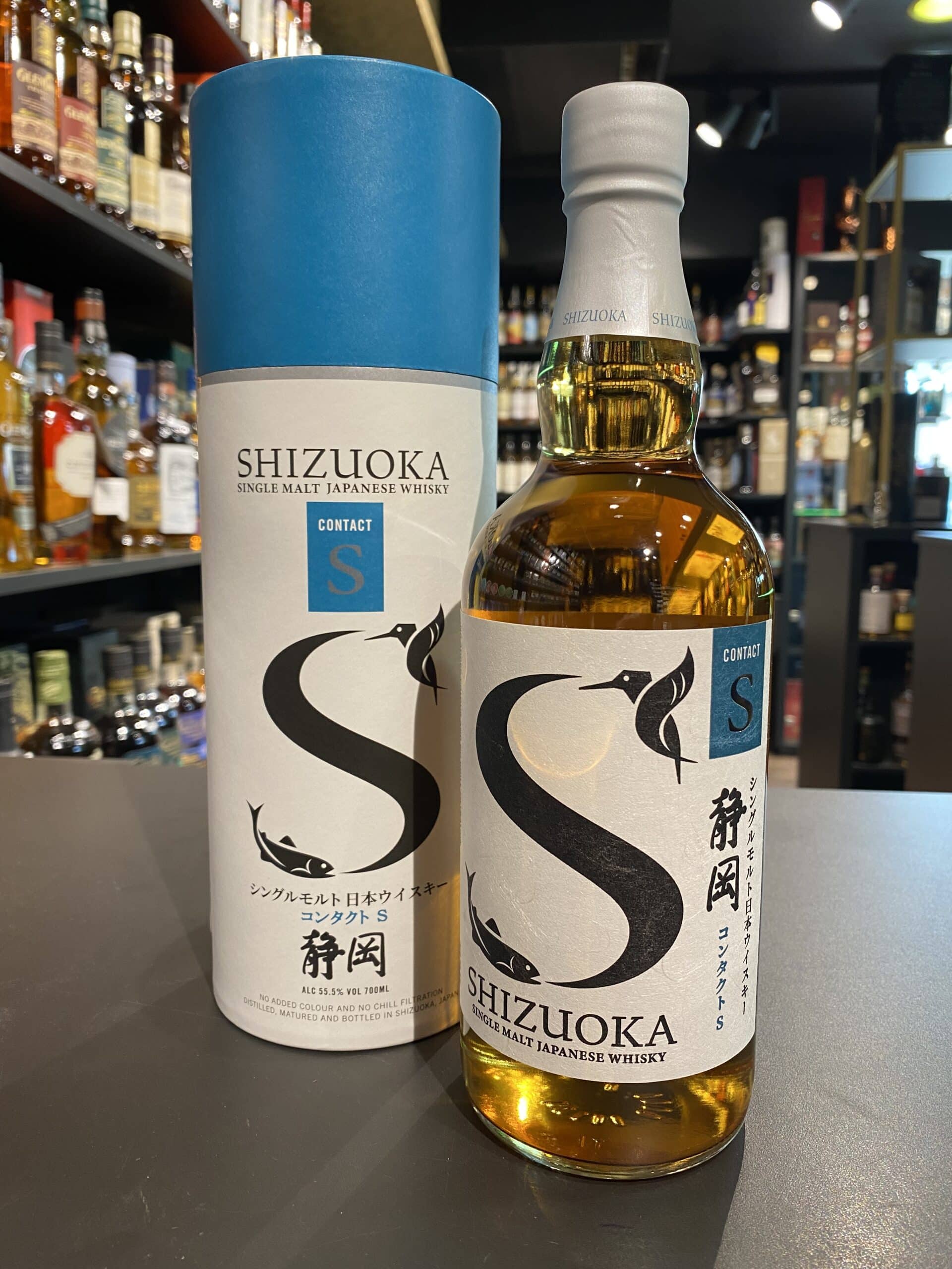 Shizuoka Contact S Limited is een zeldzaame Japanse Single Malt Whisky. De Shizuoka-distilleerderij gebruikt twee eerste distillatie-eenheden om twee verschillende soorten nieuwe gedistilleerde dranken met verschillende kenmerken te produceren. De met stoom verwarmde K heeft een fruitig aroma en een lichte smaak terwijl de hou gestookte W een zwaardere smaak en een langere afdronk geeft. De Shizuoka-distilleerderij gebruikt twee eerste distillatie-eenheden, K (verplaatst uit de Karuizawa-distilleerderij) en W (hou gestookte directe distillatie), om twee verschillende soorten ruwe sterke drank met verschillende kenmerken te produceren. Contact S is de eerste single malt die beide soorten grondstoffen combineert. Deze Contact S is een combinatie van beide soorten New-make en rijpte op bourbonvaten en quarter casks