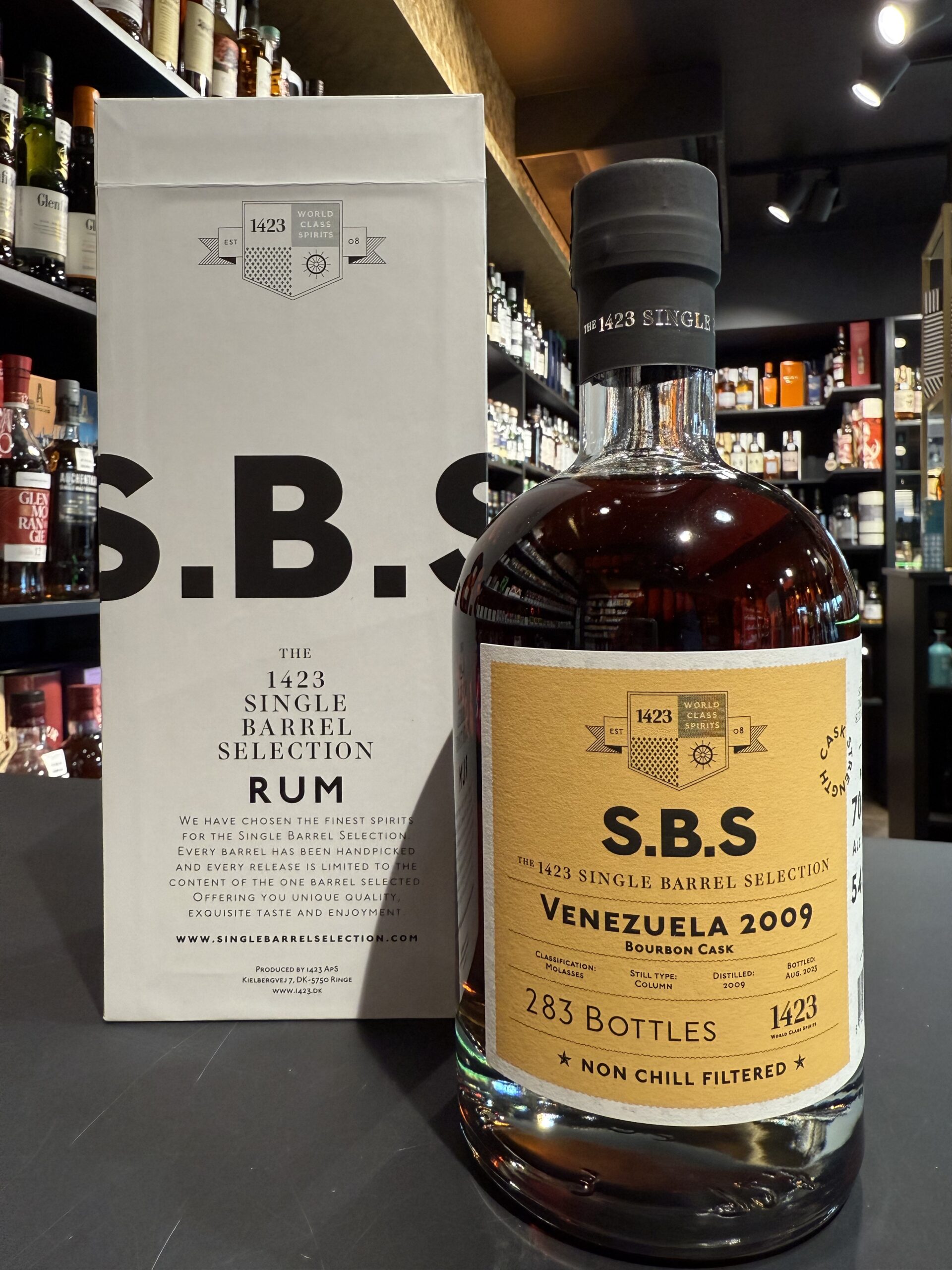 De Venezuela 2009 SBS Rum is een onafhankelijke botteling in de Single Barrel Selection-reeks van 1423 World Class Spirits. Deze rum werd gedistilleerd in 2009 en rijpte 13 jaar lang, deels in de tropen en deels in Europa. In 2022 is hij gebotteld op een stevige 54% ABV, rechtstreeks van het vat, zonder toevoegingen. De oplage is beperkt tot slechts 238 flessen.